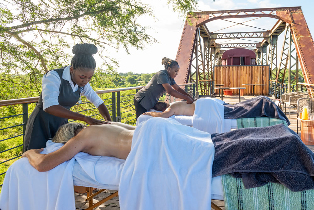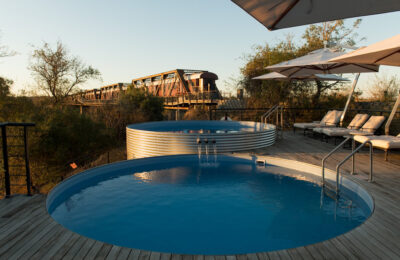 The expansive glass walls of the train rooms afford endless vistas along the Sabie River, while the train’s design is a celebration of African craftsmanship and style, incorporating local artistry into every detail. Perched high above the riverbanks, our bespoke deck with a pool invites guests to an aquatic experience like no other, with crocodiles, hippos, buffalos, and elephants making occasional appearances just meters below—a spectacle beyond compare!